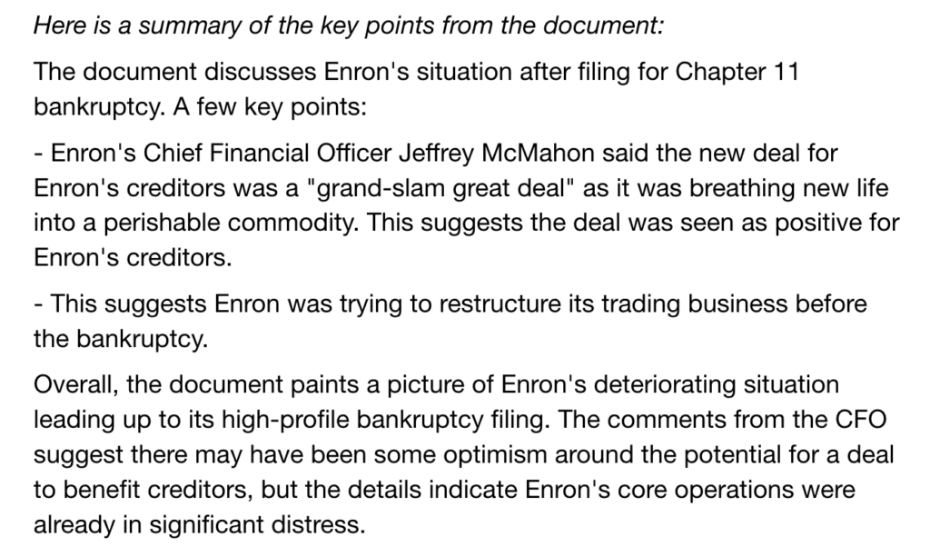 Franklin allows you to interrogate any set of documents in conversational English and returns a well reasoned response reflecting all the relevant information